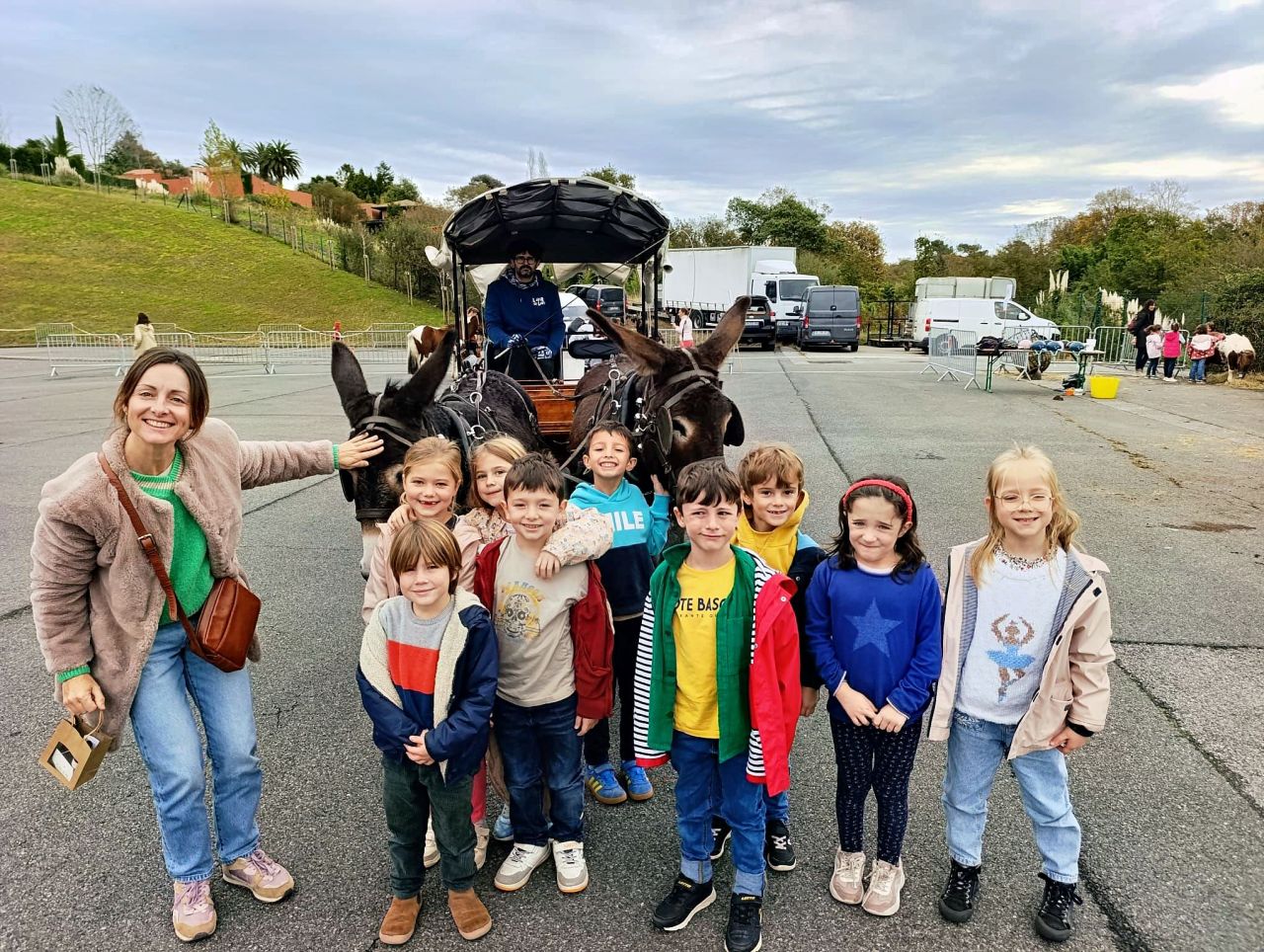 La matinée du 07 novembre les élèves bilingues de CP et CM1 se sont rendus au salon paysan du pays basque. Ils ont participé à des ateliers sur l'alimentation, observé les animaux et ont pu faire une balade en calèche.
